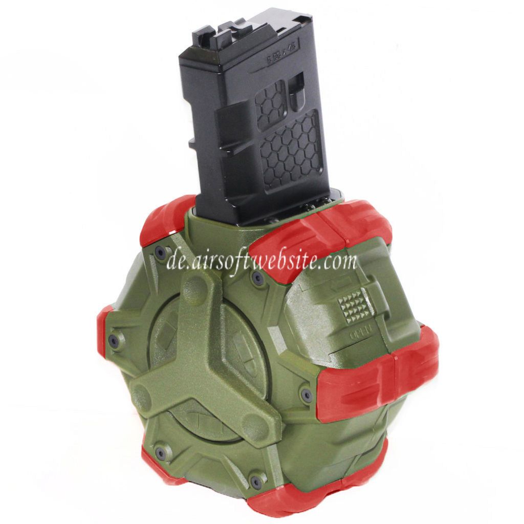 WE (WE-TECH) 350rd Gas Trommelmagazin Geeignet für WE (WE-TECH) Open Bolt Typ L85 / SCAR-L / R5C / T65 / HK416 / AR M4 M16 GBB Gewehre Airsoft